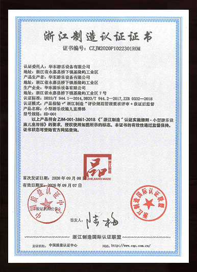 米兰·(milan)中国·运动游乐的产品先后通过ISO国际质量管理、ISO环境管理、职业健康安全管理、安全生产标准化、知识产权管理体系、德国TUV、3C、SGS等国家和国际权威认证,公司先后被相关政府评为高薪技术企业、巨龙企业、知名商标、永嘉县“县长质量奖”、明星企业、高成长型企业等荣誉称号!