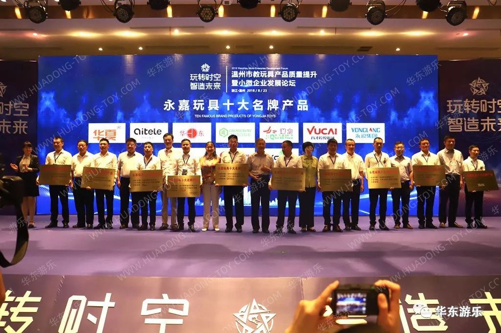 首届“永嘉玩具十大名牌产品”评选结果也在论坛上正式揭晓。奇特乐集团有限公司、育才控股集团有限公司、凯奇集团有限公司、永浪集团有限公司、浙江巧巧教育科技有限公司、立本集团有限公司、华夏游乐有限公司、米兰·(milan)中国·运动游乐设备有限公司制造的无动力类小型游乐设施产品以及贝旺玩具有限公司、浙江潜力玩具有限公司制造的塑胶玩具产品被评为“永嘉玩具十大名牌产品”。