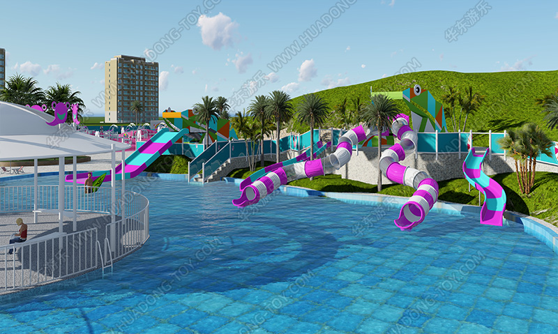 本案例设计灵感来源于童谣 小蝌蚪,圆溜溜,小尾巴,拖后头,东游游,西逛逛,好像许多黑豆豆。以青蛙的发育史为主要创作元素,引用小蝌蚪可爱的形象,结合青蛙的各种造型,打造小朋友们像小蝌蚪一样在水中自由自在的游玩与尽情的追逐的综合性水上乐园。整个水上乐园充满活泼奇特,让孩子们在玩的过程中激发了想象力,提高保护小动物的意识,起到寓教于乐的效果!