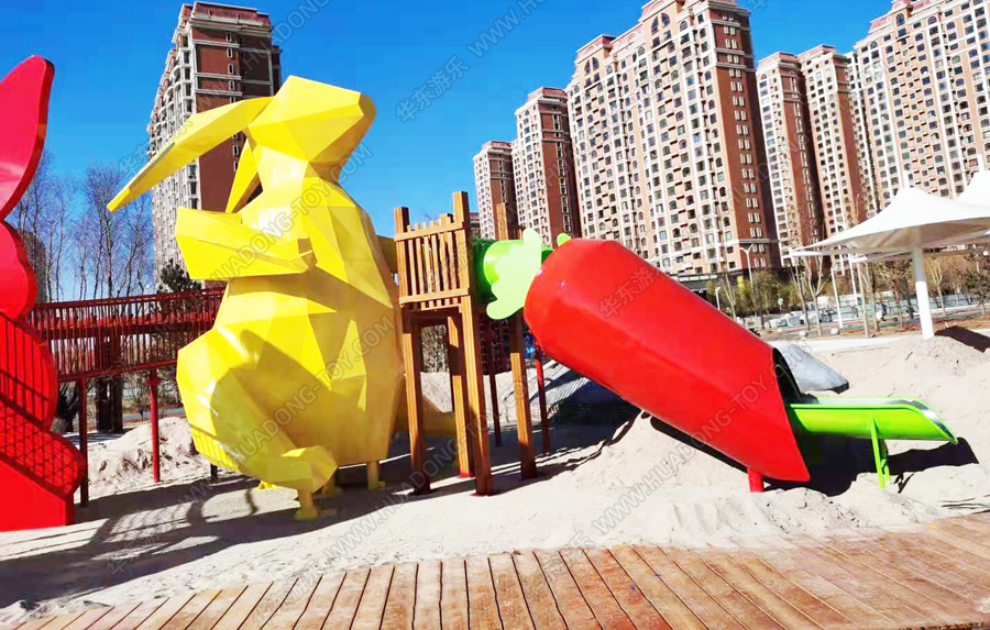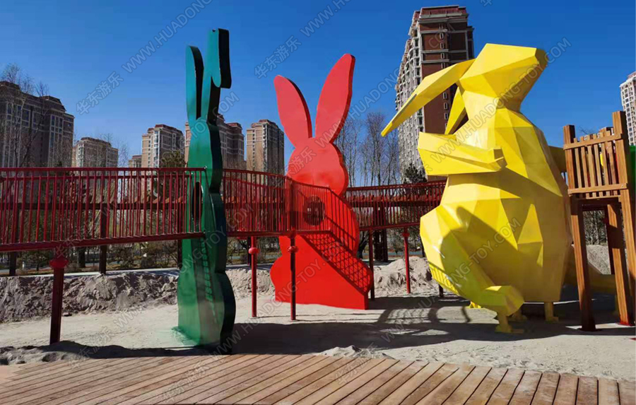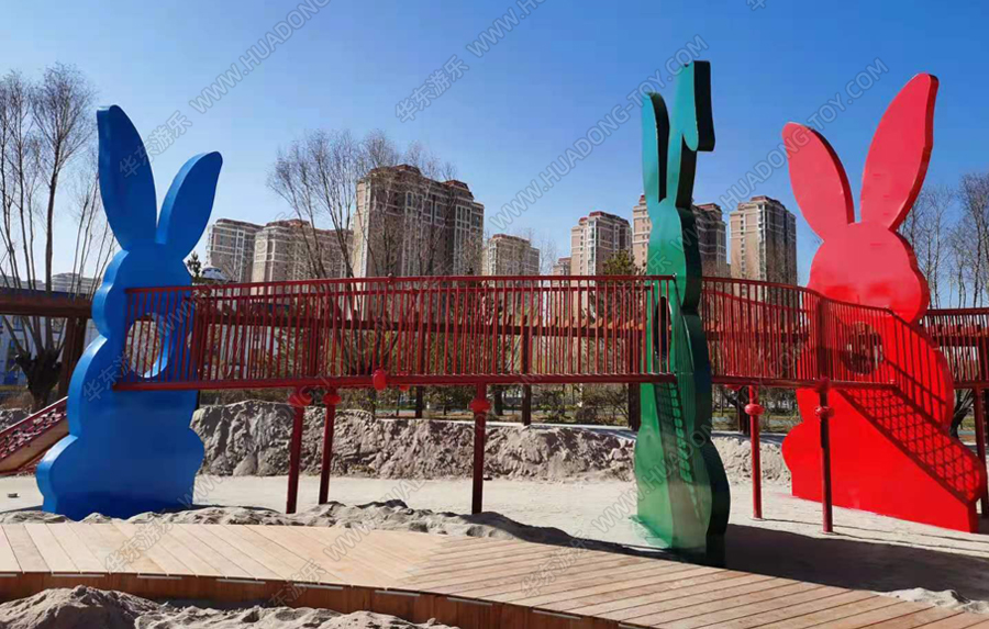 兔子乐园非标定制是米兰·(milan)中国·运动游乐根据客户场地需求以及结合当地实际情况而设计的兔子主题乐园的游乐场,该游乐园具有主题鲜明,设计新颖,功能多样等特点,设计了滑梯组合、爬网、钻洞、沙池等游乐设备。