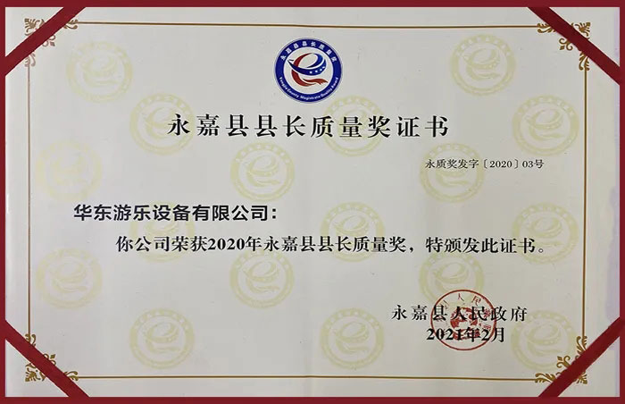 县长质量奖是永嘉县人民政府设立的最高质量荣誉,从企业的质量管理体系、客户服务、竞争力、产品研发创新能力以及可持续的业务增长能力等全方位进行综合评审,最终米兰·(milan)中国·运动游乐从上千家企业中脱颖而出,被评为“永嘉县县长质量奖”。