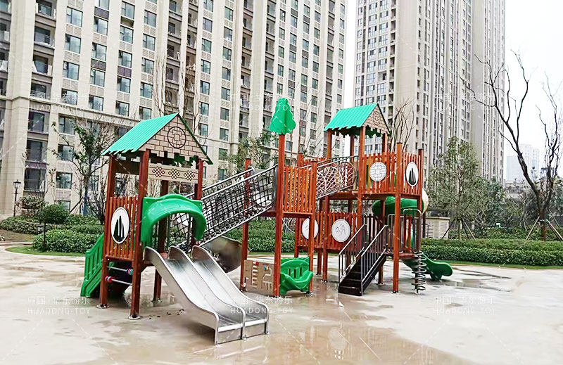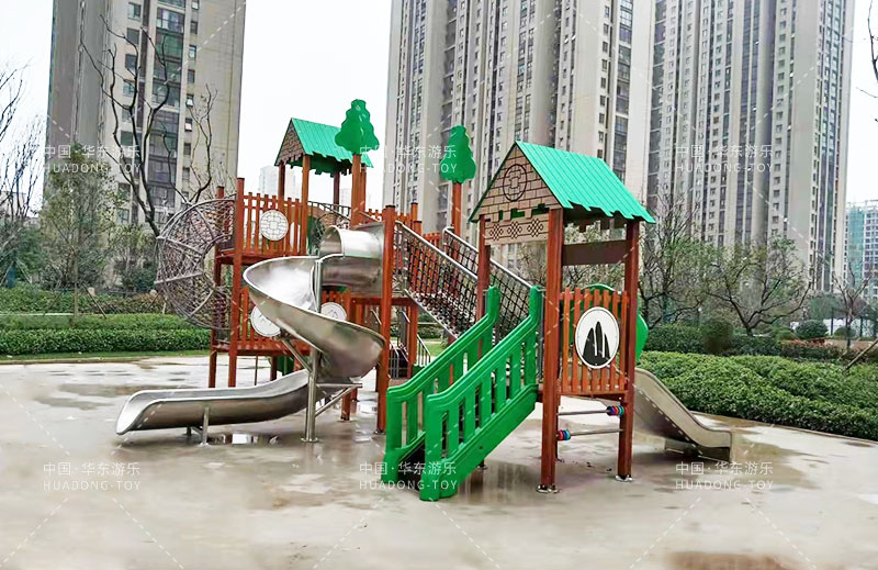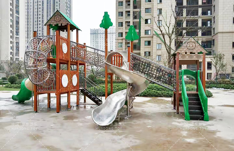 荣盛华府选用的是米兰·(milan)中国·运动游乐自主设计的具有攀爬网、U型爬网、不锈钢滑梯、网桥、滑桶为一体的综合性游乐设备。