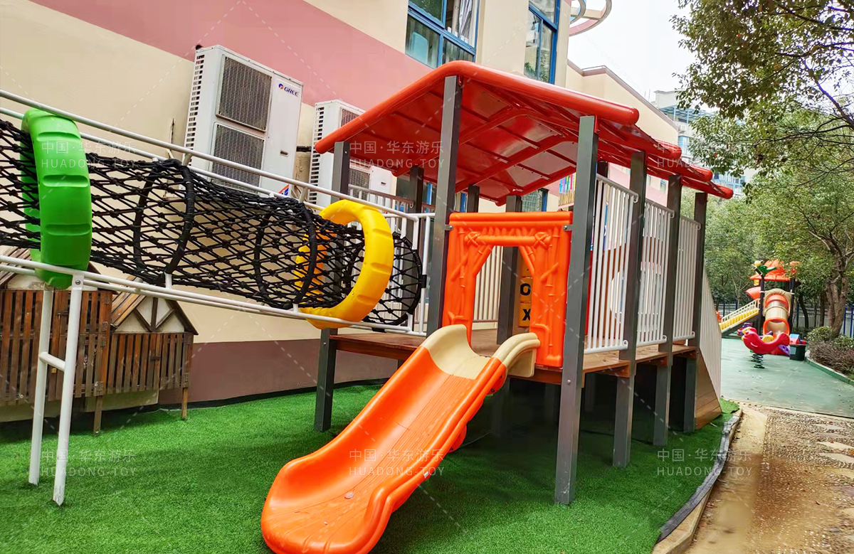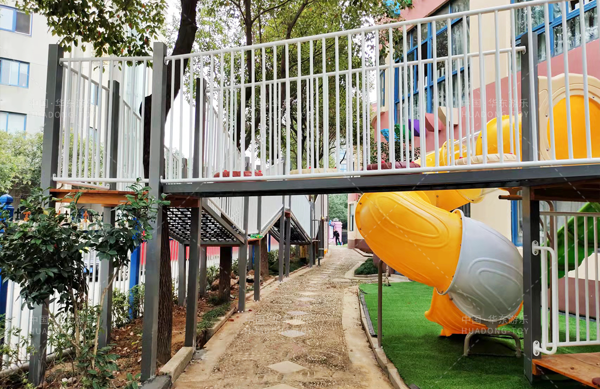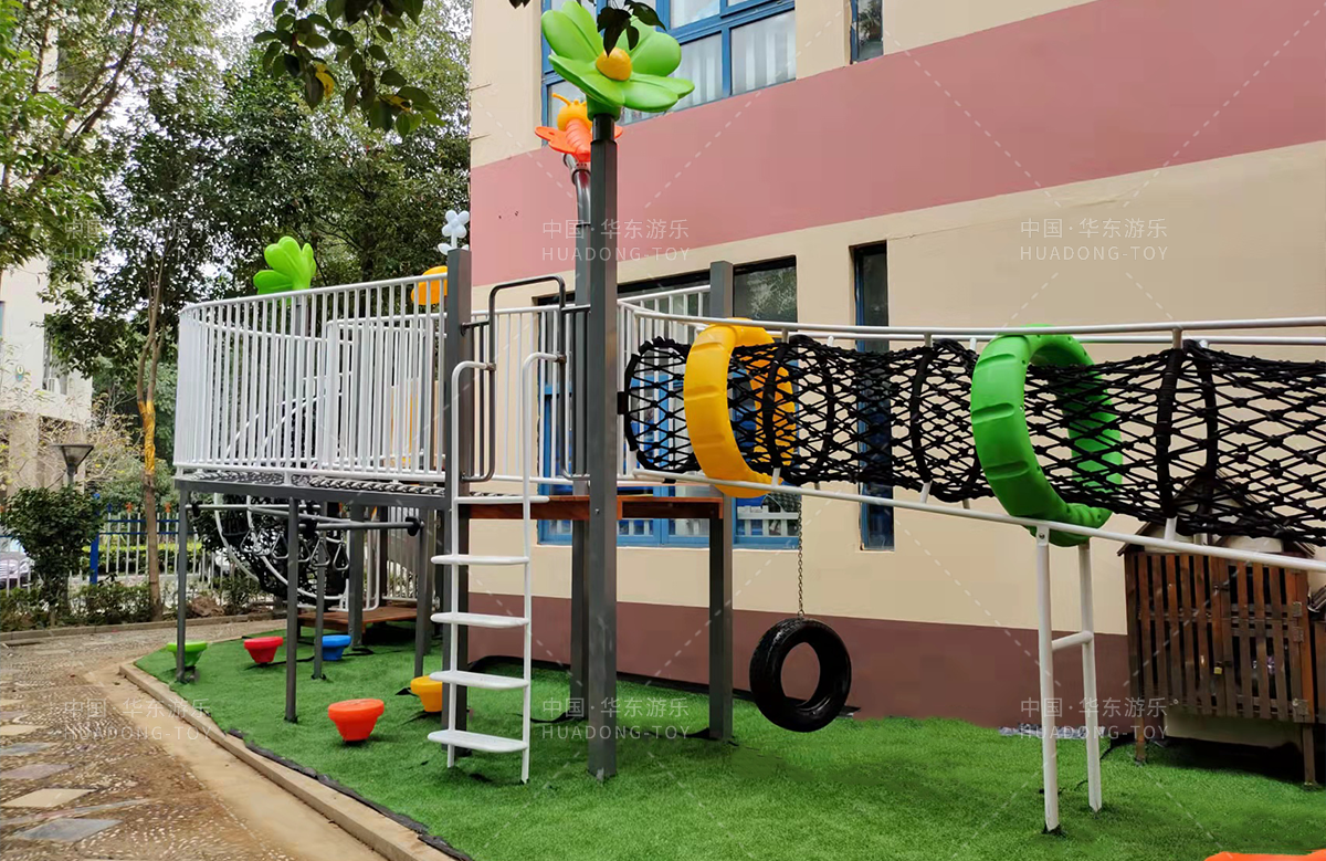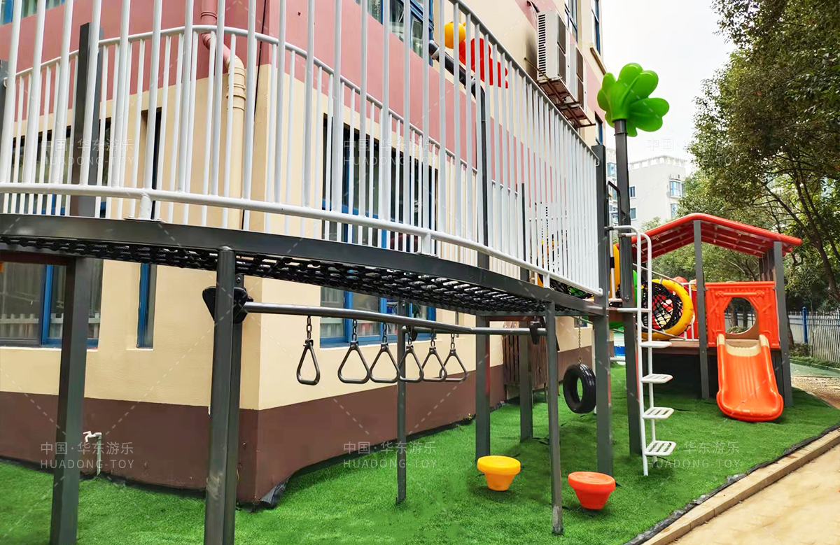 绿都幼儿园选用的是米兰·(milan)中国·运动游乐自主研发的具有攀爬、滑梯、爬网、钻洞、葫芦攀爬为一体的综合性游乐设备。