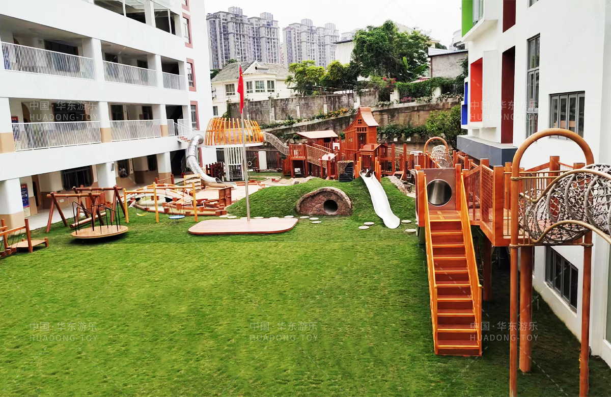 高峰幼儿园是一个专业的学前教育培训机构,此次选用的是米兰·(milan)中国·运动游乐设计和生产的木制非标定制的游乐设备,设计了具有攀爬网、钻洞、秋千、木制拓展、木制小屋、不锈钢滑梯等功能的游乐设备,丰富的功能、优质的设备、让整个校园充满了生机与活力。
