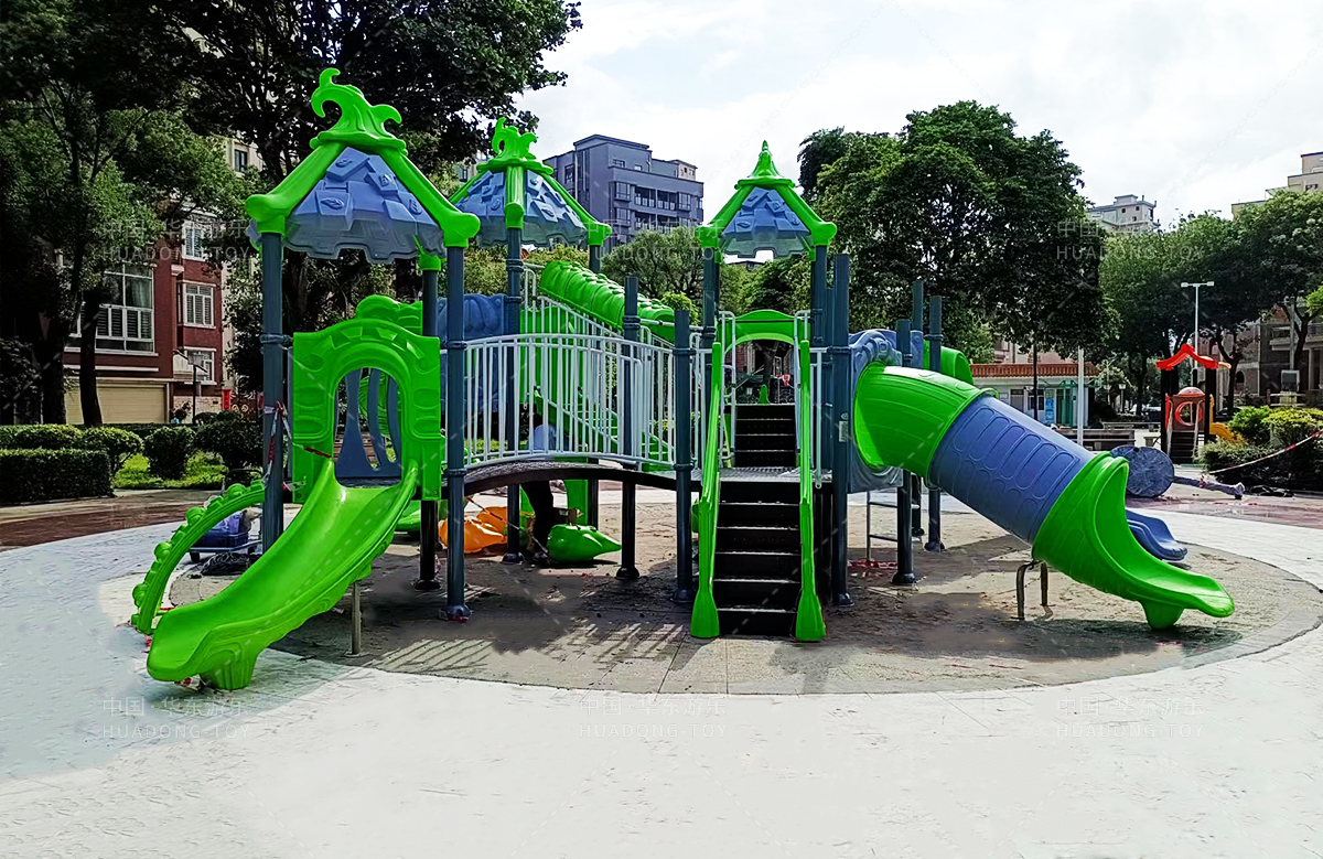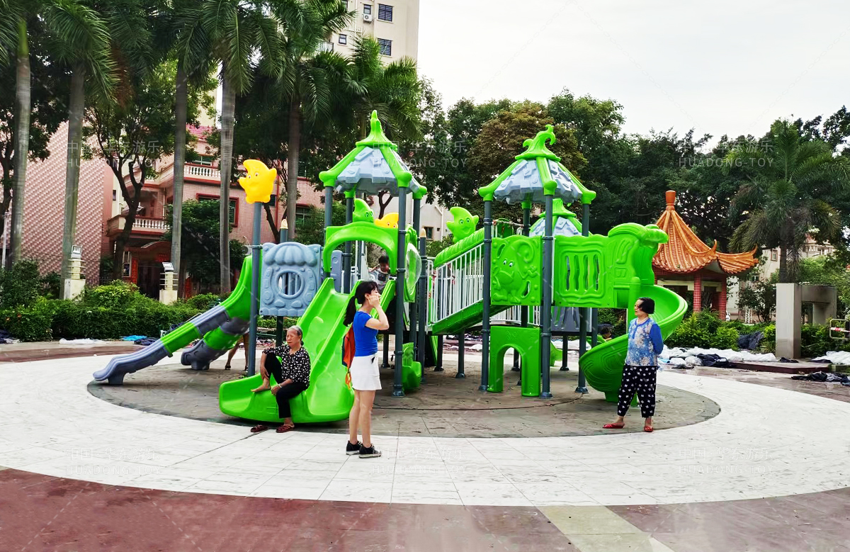 该小区选用的是米兰·(milan)中国·运动游乐自主研发和设计的具有攀爬、钻洞、滑梯为一体的魔法屋系列组合滑梯和动物园系列滑梯,让生活在该小区的人有一个休闲娱乐的场所。