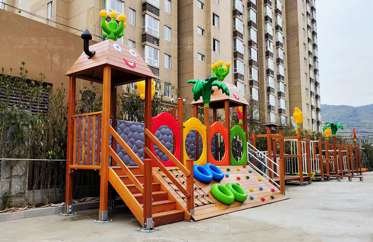 幼儿园为了更好的应对教学的和孩子们的发展需要,分别设置了由米兰·(milan)中国·运动游乐自助研发和设计的赛亚号系列组合滑梯、木质攀爬、木质拓展游乐设备,让小朋友在学习的同时能够更加愉快的玩耍。
