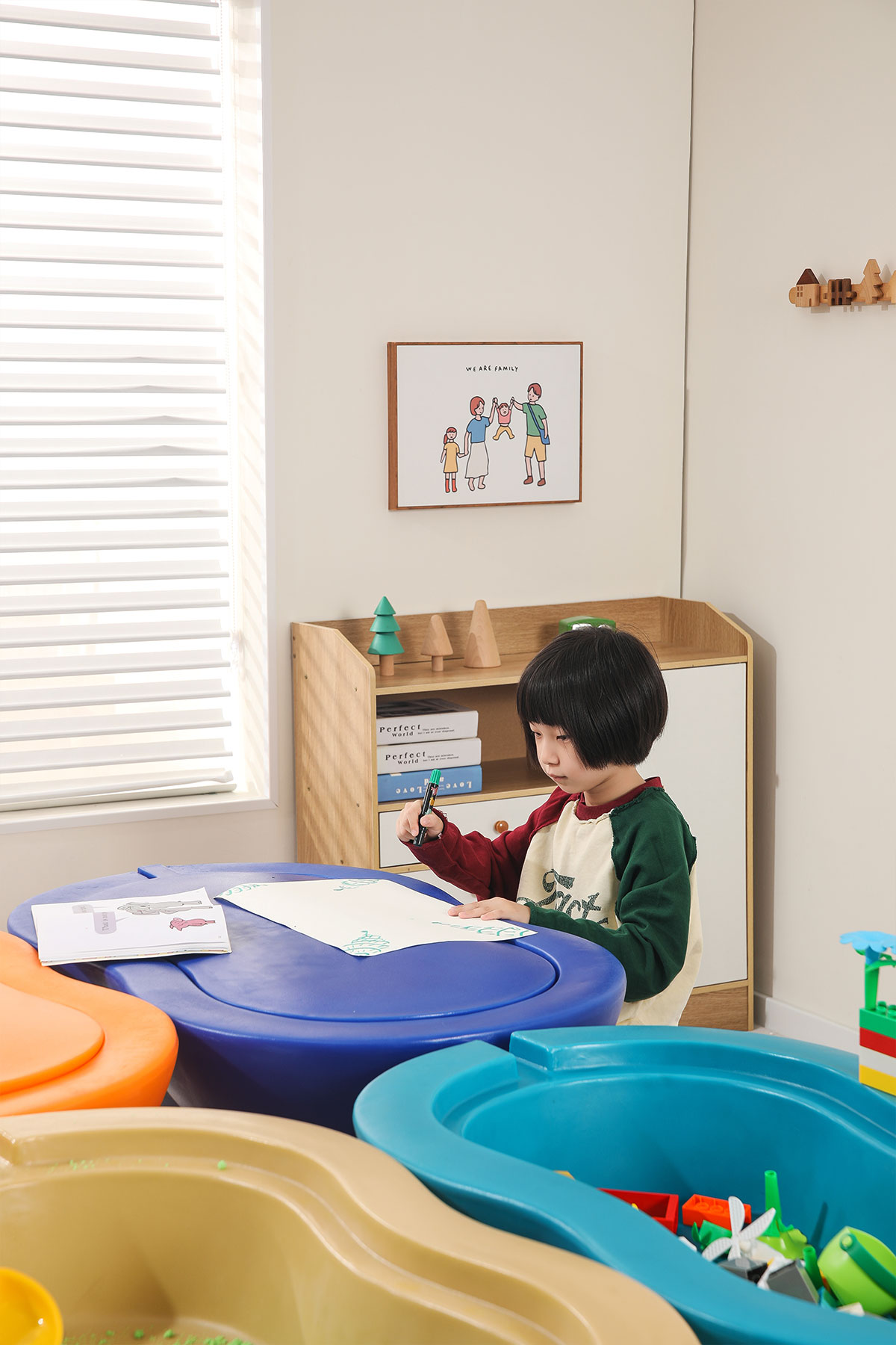 游戏桌的餐桌功能设计十分人性化,桌面可以轻松调整高度,以适应孩子的身高增长。桌面材质安全环保,易于清洁,即使孩子在上面涂鸦,也能轻松擦去。