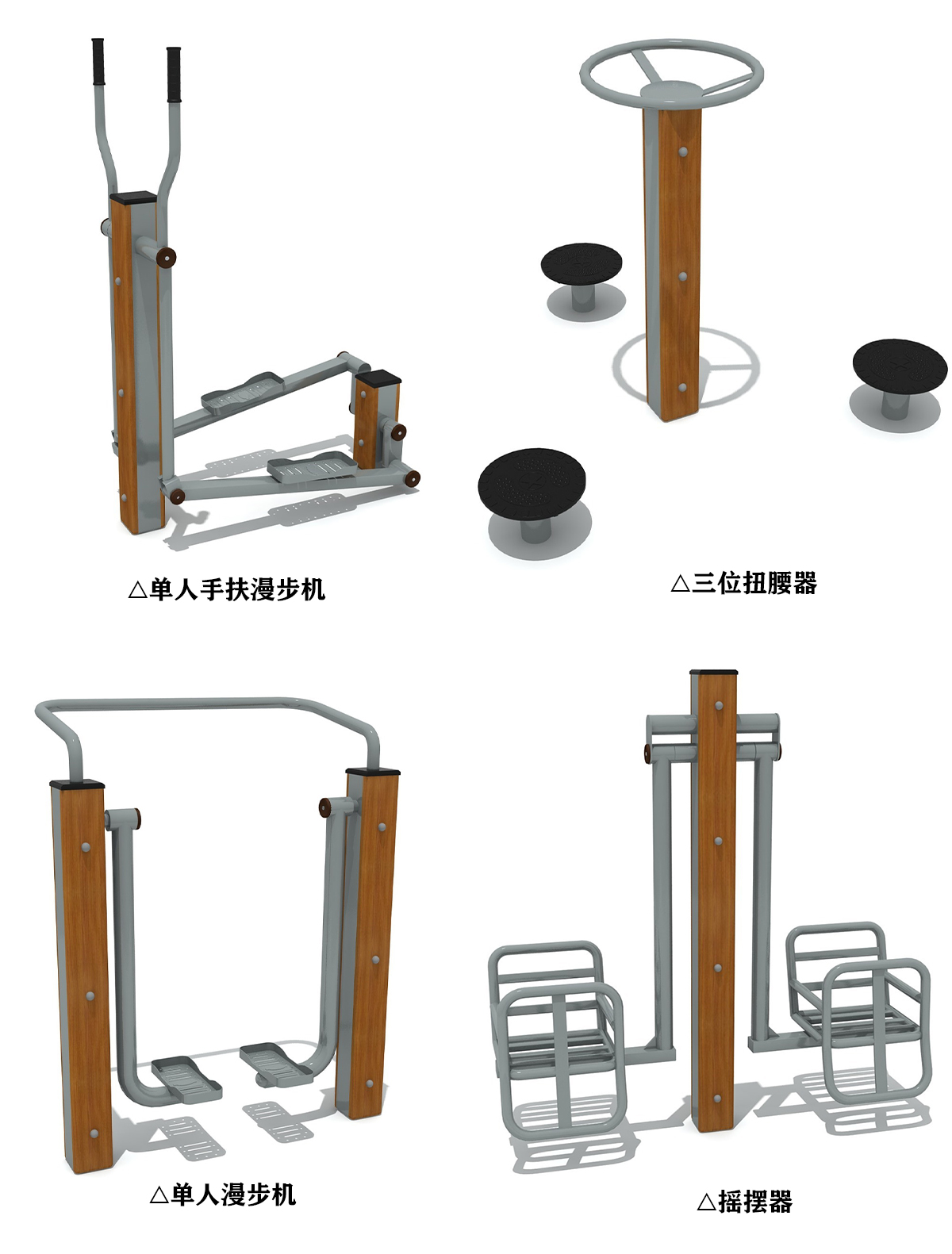 户外健身器采用耐用钢材与防滑材质设计,确保安全稳定。其包含划船机、漫步机、跷跷板等多种功能部件,可全面锻炼上肢、下肢及核心肌群。简洁的操作界面与人体工学设计,适合各年龄段人群,提升公众健康水平。