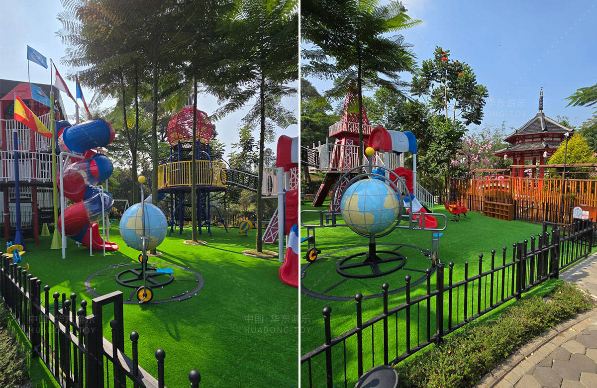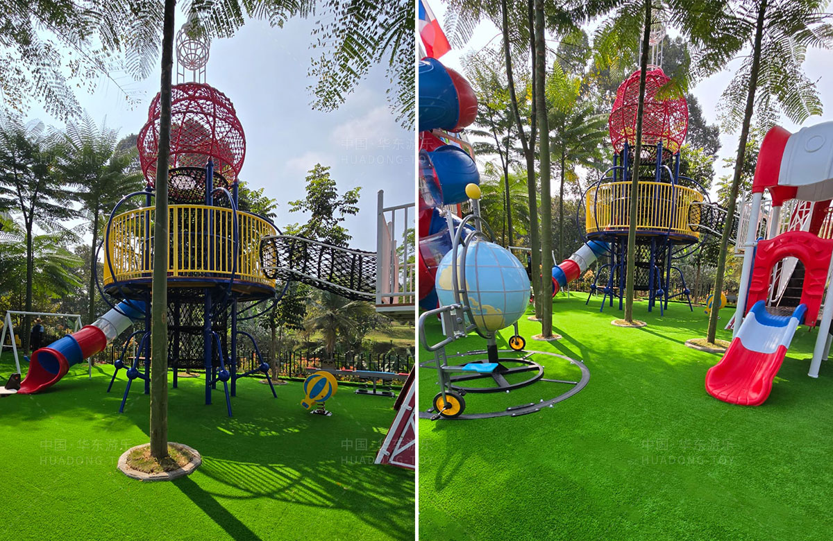 该项目选用的是米兰·(milan)中国·运动游乐自主研发和设计的跨国系列组合滑梯,该滑梯具备了攀爬网、钻洞、滑梯等功能,同时为了让整个游乐场变得更加具有生机与活力,整个项目还设置了小朋友喜欢的儿童摇摇乐、儿童跷跷板、以及地球旋转自行车等游乐设备,为当地的人群体提供了一个休闲娱乐的场所。