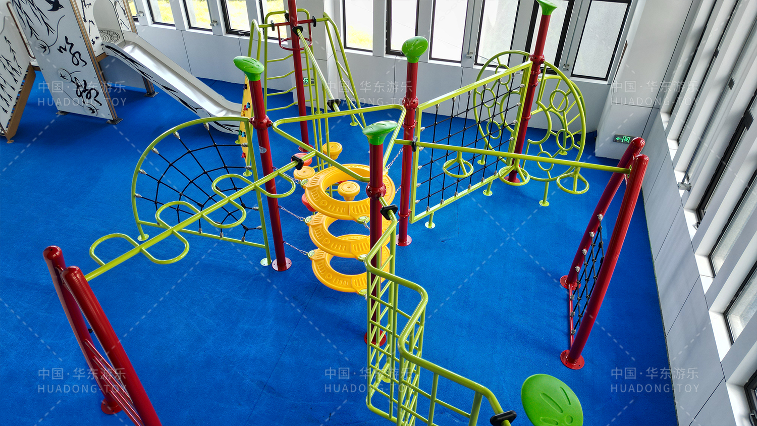攀爬网:模拟自然环境的复杂路径,采用高强度、安全环保的材质编织而成,让孩子们在攀爬中锻炼上肢力量、协调能力和空间感知能力,同时享受征服高空的成就感。