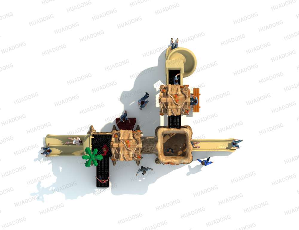 • 远古部落系列虽然名字带着“古”字,但是在设计细节处无不透露着艺术与创造性。当孩子在仿真树中探索、冒险、嬉戏游玩时,就像穿越到古老的神秘森林;粗略的树干包围着他们,头顶是高耸的茅草屋,触感真实的枯枝走廊,还有随处可见的小动物们…… 远古部落系列旨在打造区别于其他系列带给孩子们的新鲜感,让孩子们找设计者打造的神秘世界中获得冒险的乐趣。